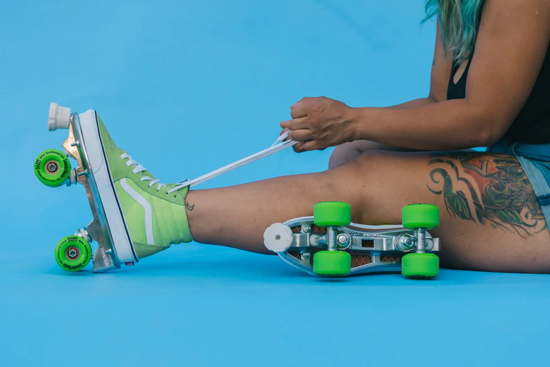 El talón incorporado brinda una postura cómoda y el dedo del pie sigue la forma natural de un zapato para una apariencia limpia. Las ruedas exteriores de tamaño 62 mm x 38 mm / dureza 80A especiales para quad y brindan una conducción suave y estable. Las características especiales son las opciones para agregar un tope de talón a la placa para mayor seguridad o un slide Chaya Karma para uso en skatepark.